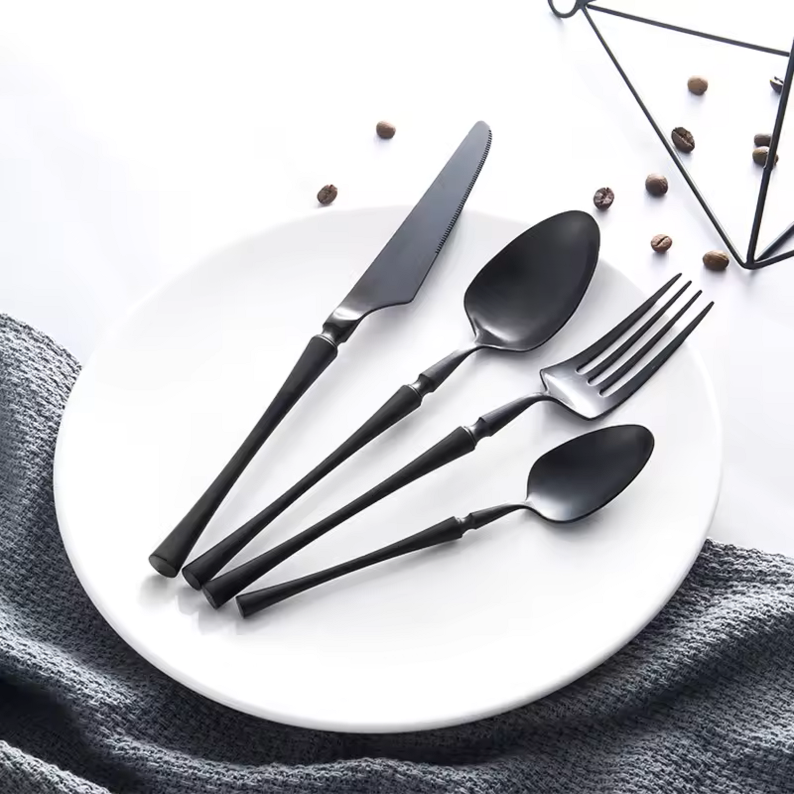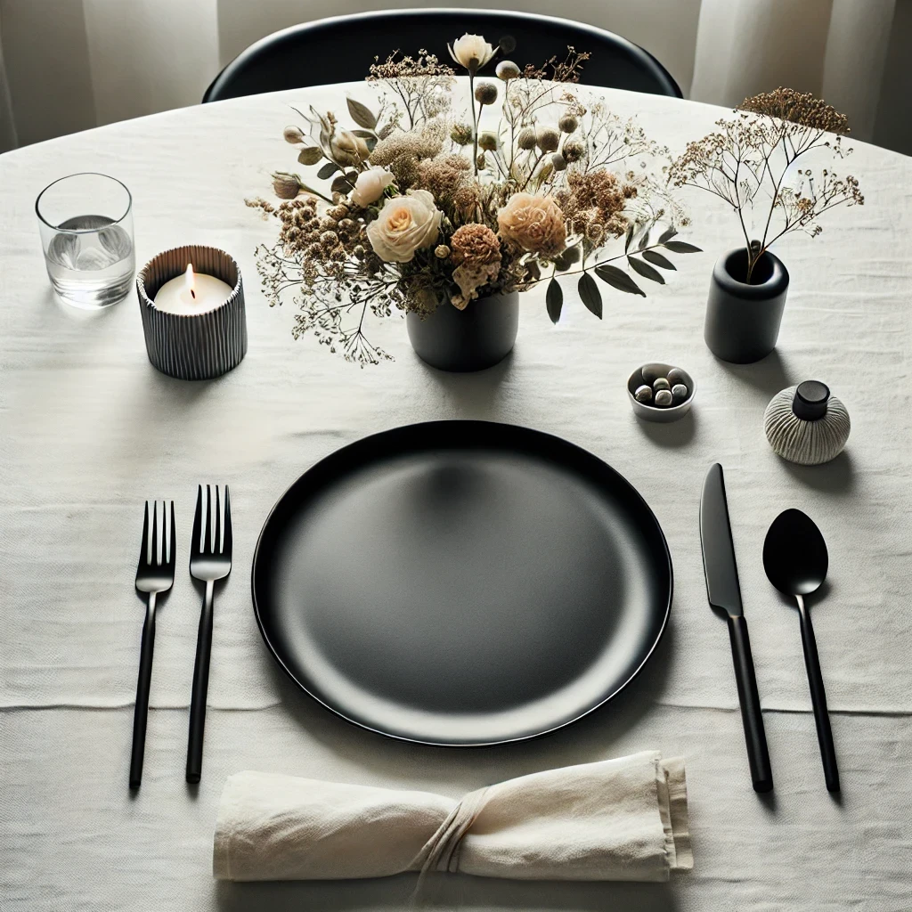 - Tacâmuri negre: Dacă dorești să adaugi un element de modernitate și stil mesei tale, tacâmurile negre sunt o alegere excelentă. Ele adaugă un contrast puternic și pot transforma instantaneu aspectul mesei, oferind o notă sofisticată și contemporană.