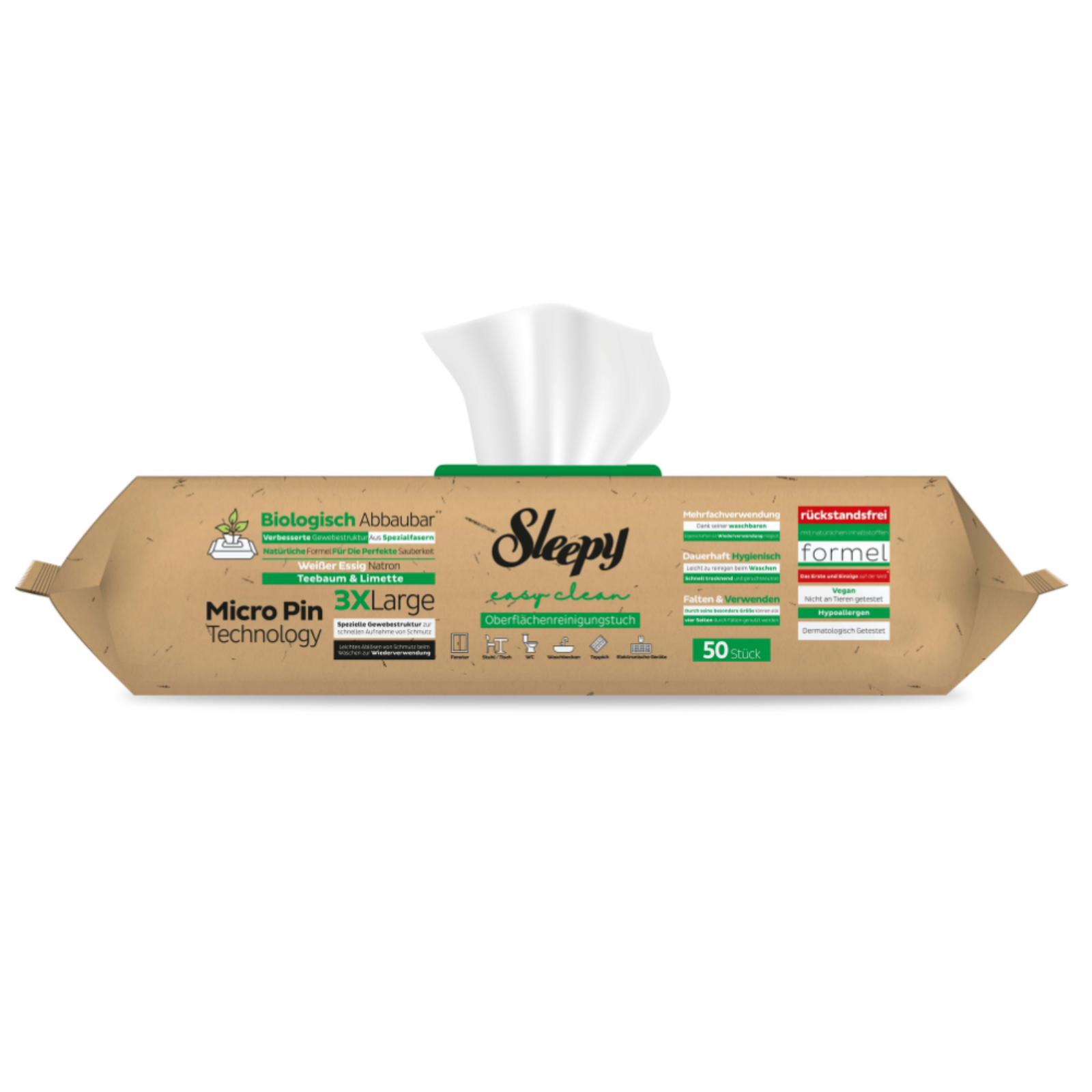 Șervețelele umede biodegradabile Sleepy Bio Easy Clean Tea Tree & Lime sunt create pentru curățarea rapidă și eficientă a suprafețelor din întreaga locuință, combinând puterea de curățare cu o formulă orientată spre natură. Conțin o combinație de oțet alb și bicarbonat de sodiu, cunoscută pentru capacitatea de a îndepărta murdăria și petele fără a lăsa urme și fără a necesita clătire.