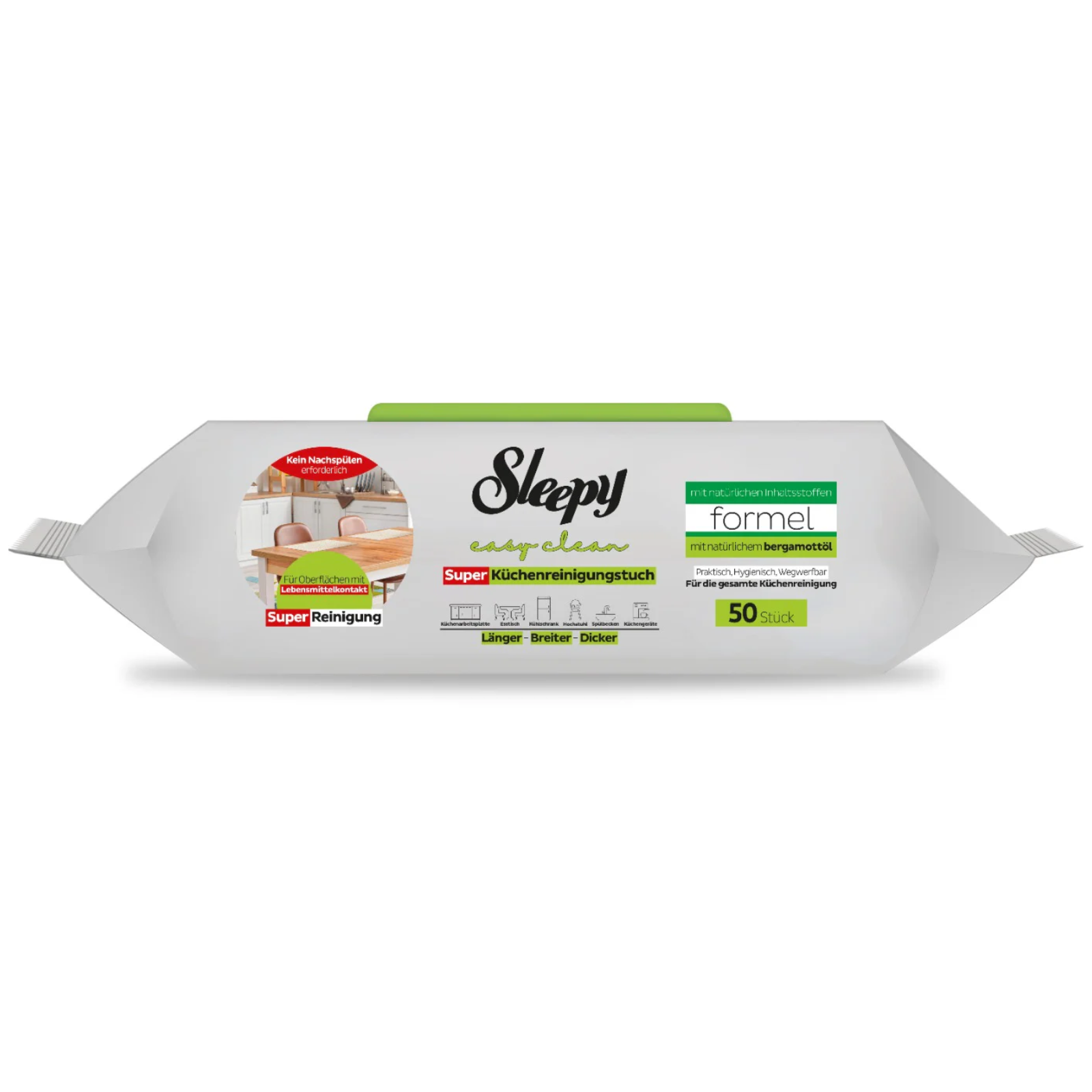 Sleepy Servetele Umede pentru Bucatarie Sleepy Easy Clean 50 buc, cu Ulei Natural de Bergamota, Degreseaza Rapid, Sigur pentru Suprafete in Contact cu Alimentele, Extra Groase si Rezistente