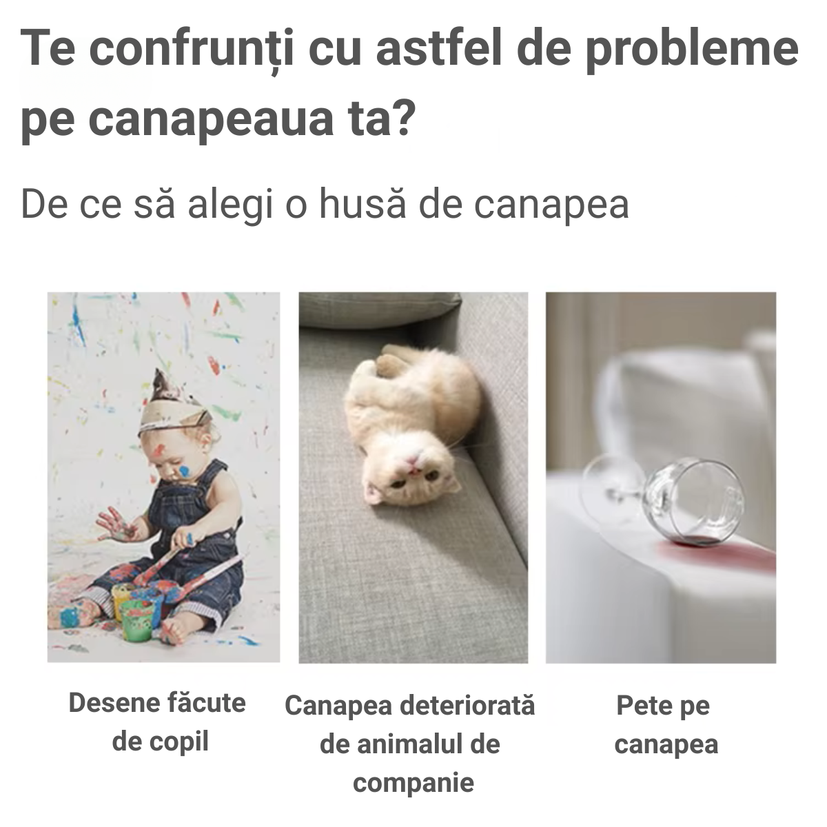 • Protecție eficientă pentru canapea împotriva murdăriei, petelor, uzurii sau părului de animale