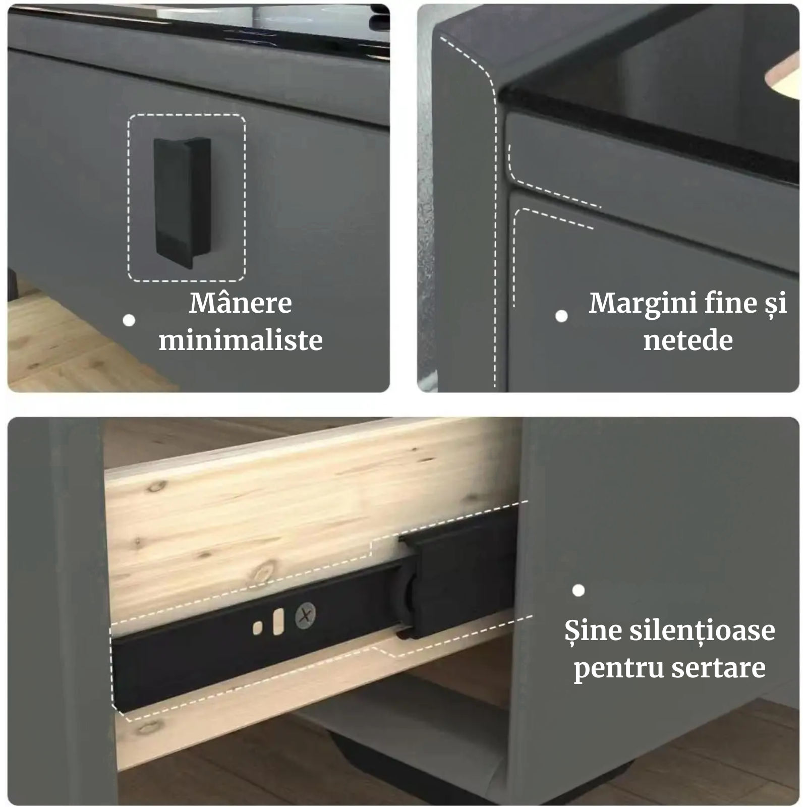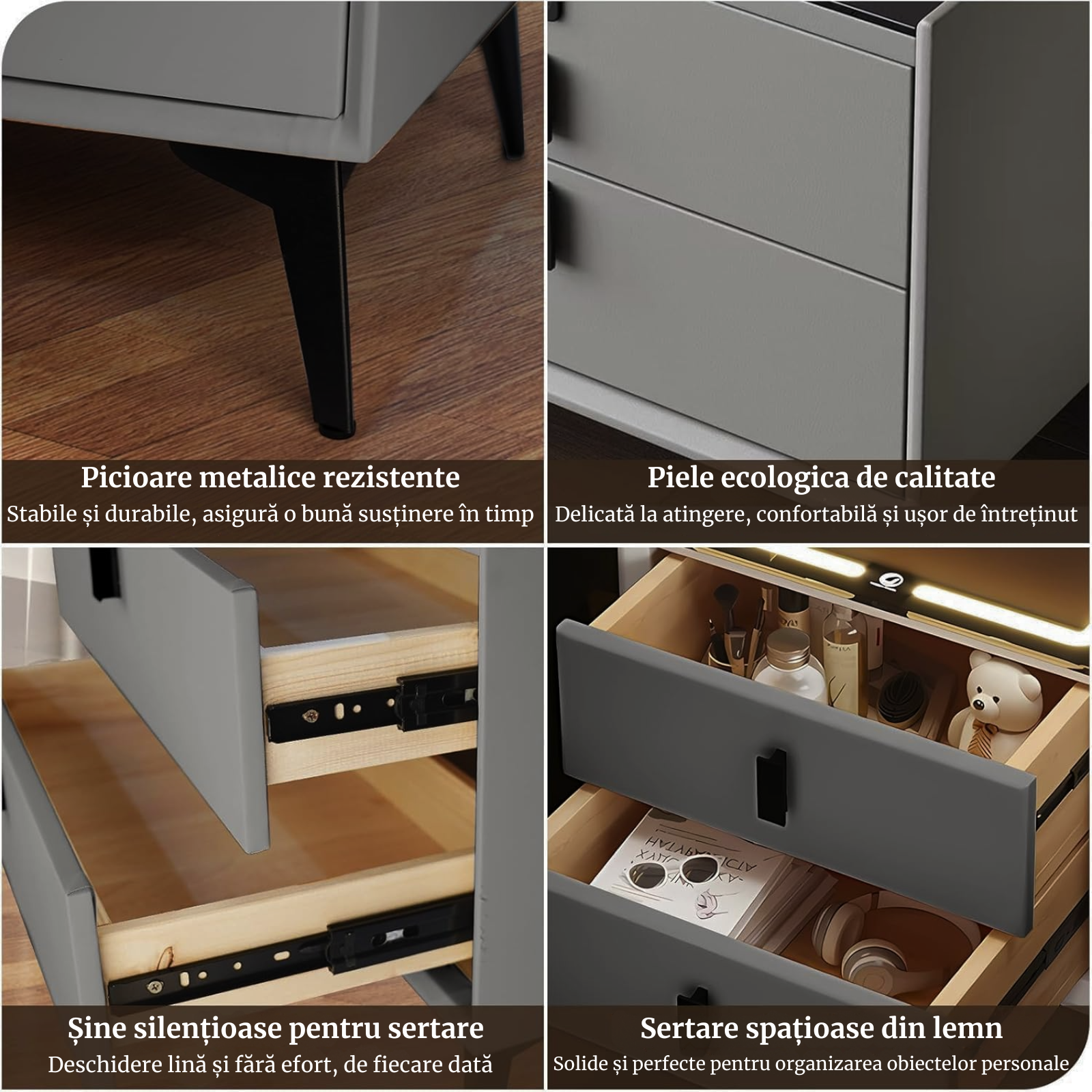 Este soluția ideală pentru cei care își doresc mai mult decât un simplu spațiu de depozitare. Această noptieră inteligentă combină eleganța cu tehnologia, oferindu-ți un colț personal unde te poți relaxa, citi, asculta muzică și încărca toate dispozitivele fără griji.