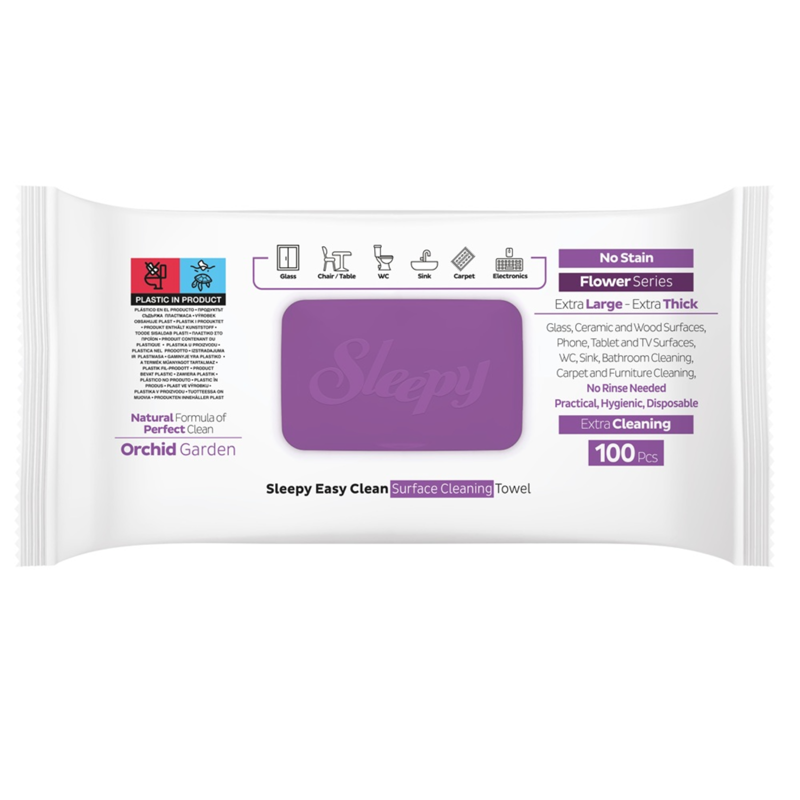 Servetele Umede Multisuprafete Sleepy Easy Clean Orchid Garden 100 buc, cu Otet si Bicarbonat, fara Parabeni SLS si Clor, Extra Mari si Groase, Curatare fara Urme pentru Bucătărie si Baie